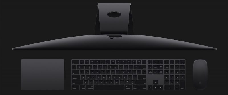 The iMac Pro comes Space Gray accessories that were originally only available through an iMac Pro purchase but were later made available on a standalone basis. These accessories include a space Gray Magic Keyboard with Numeric Keypad, a Space Gray Magic Mouse 2, and a Space Gray Magic Trackpad 2.